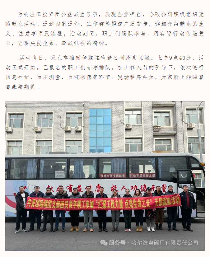 热血汇聚,爱心传递——哈碳公司职工踊跃参与无偿献血活动